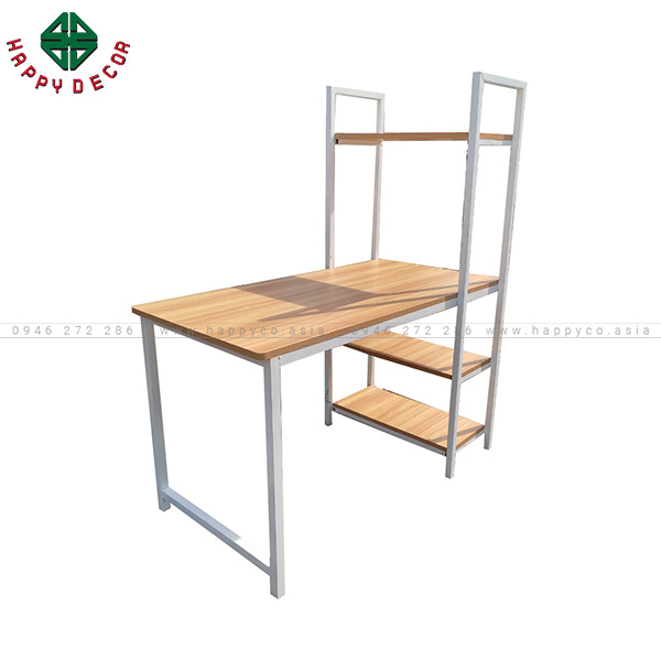 Kệ sách tích hợp: Bàn học thường đi kèm với kệ sách tích hợp, nghĩa là các kệ sách được gắn chắc chắn vào khung bàn hoặc mặt bàn. Điều này giúp tối ưu hóa không gian và tạo ra một không gian lưu trữ sách gọn gàng và tiện lợi.
