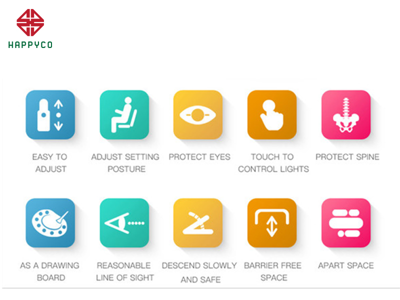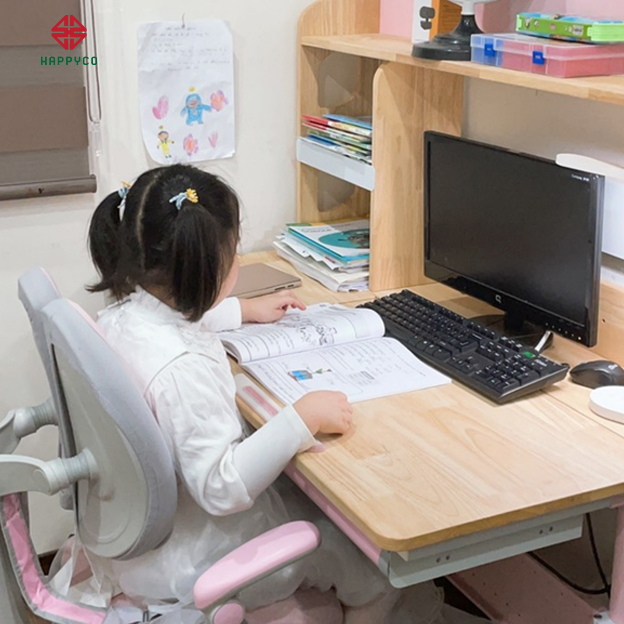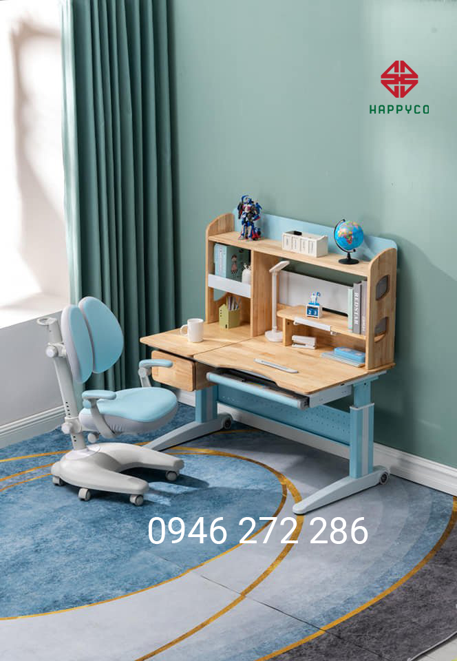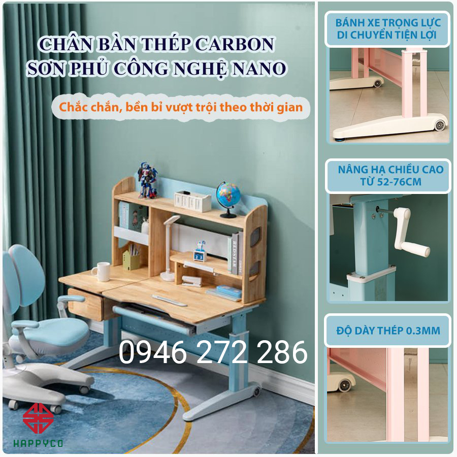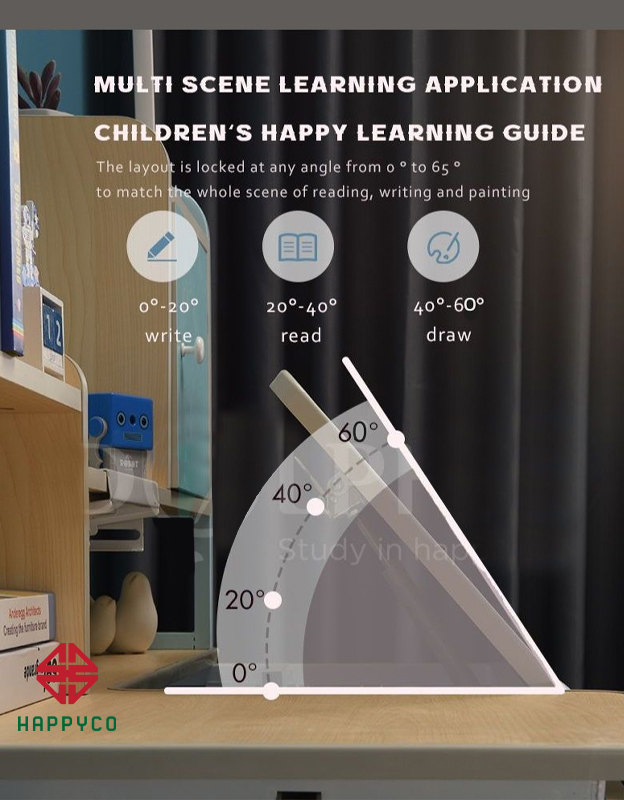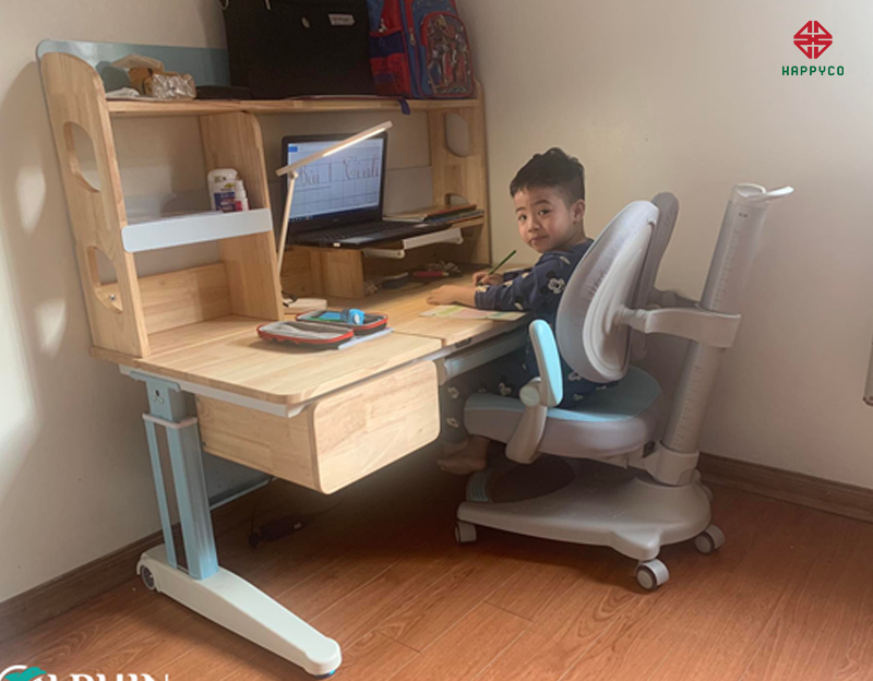 Bàn có thể điều chỉnh độ nghiêng 0º đến 50º bằng trục nâng hạ thuỷ lực; tạo “khoảng cách vàng” giúp bé không cần phải nheo mắt hay cúi đầu xuống khi chép bài; bảo vệ thị lực hiệu quả hơn.