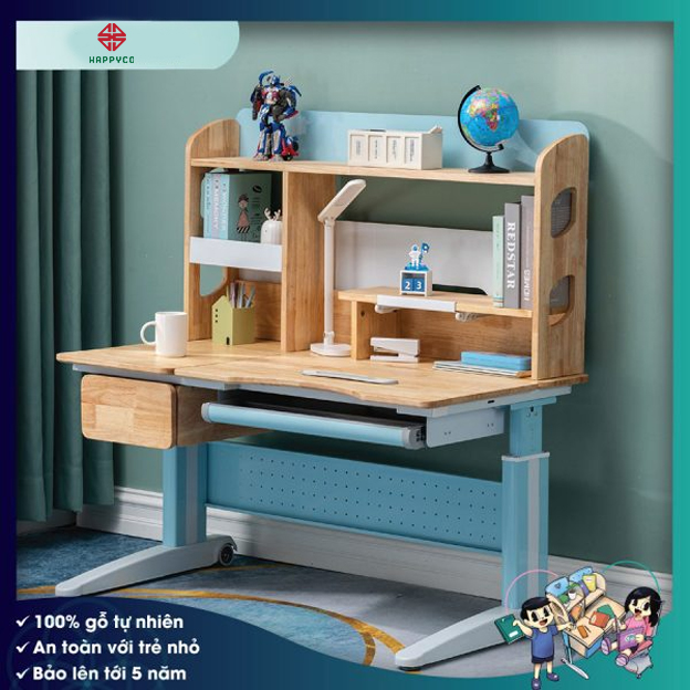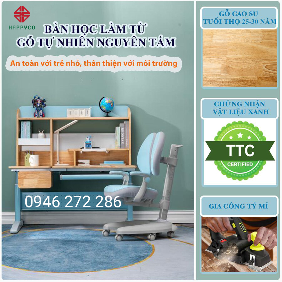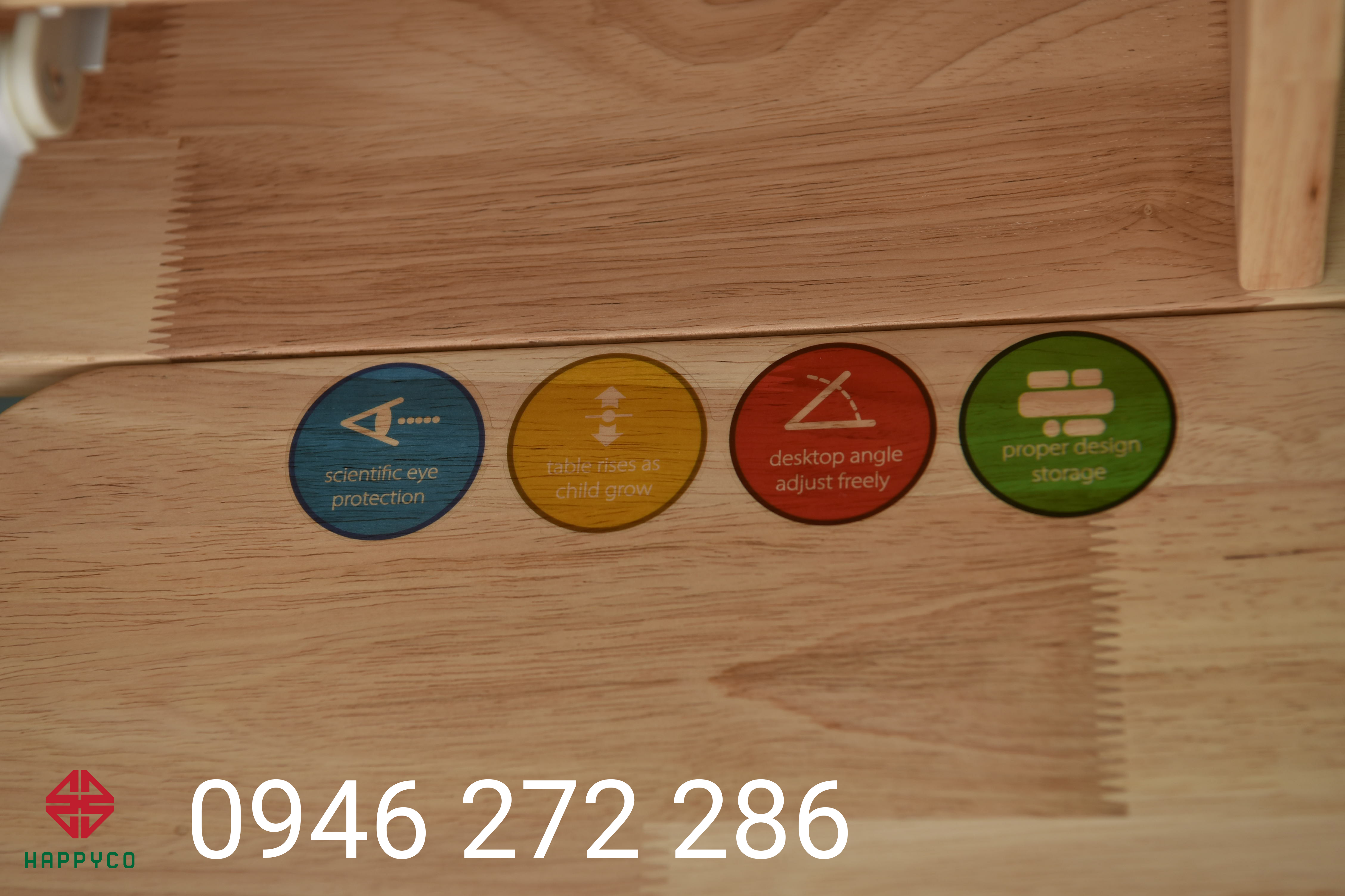 Mặt bàn gỗ cao su tự nhiên có độ cứng cao và bền, không dễ bị biến dạng, thân thiện với môi trường. Bề mặt được phủ nano chống lóa cao cấp, bảo vệ mắt bé khỏi bị cận thị. Độ dày mặt bàn 18 mm tạo nên bề mặt cứng cáp và vô cùng chắc chắn nổi bật với vân gỗ tự nhiên.