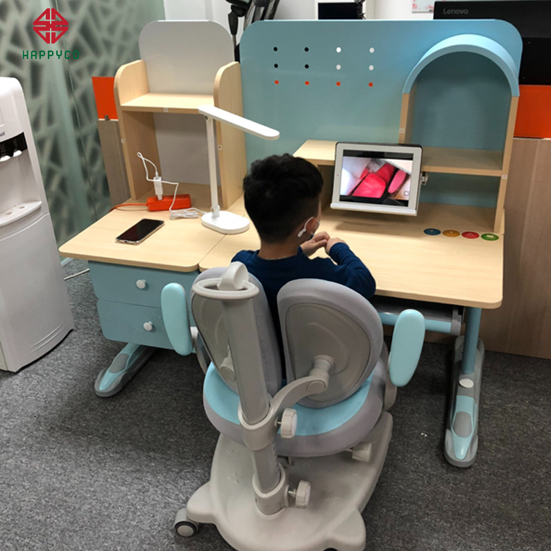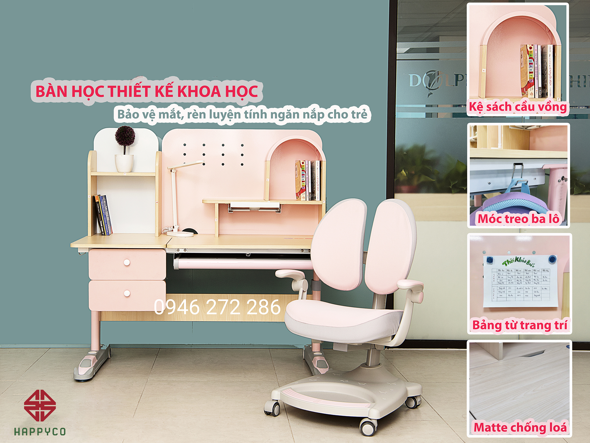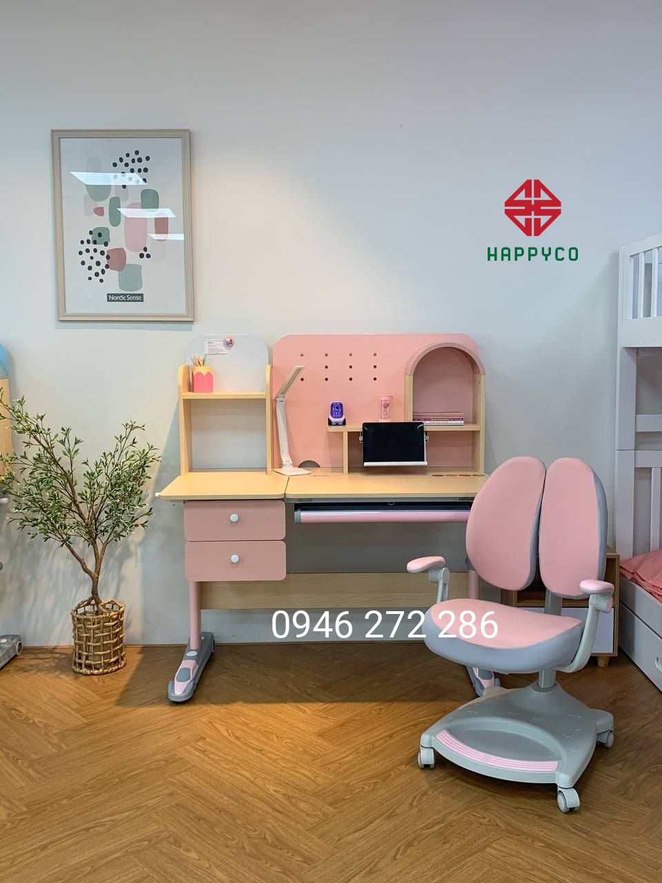 Bàn được chia làm 2 phần là mặt bàn cố định và mặt bàn có thể điều chỉnh độ nghiêng, phù hợp với các hoạt động học, đọc, viết, vẽ của con. Từ đó tạo nên một “khoảng cách vàng”, con không phải nheo mắt hay cúi gằm mặt xuống bàn nữa.