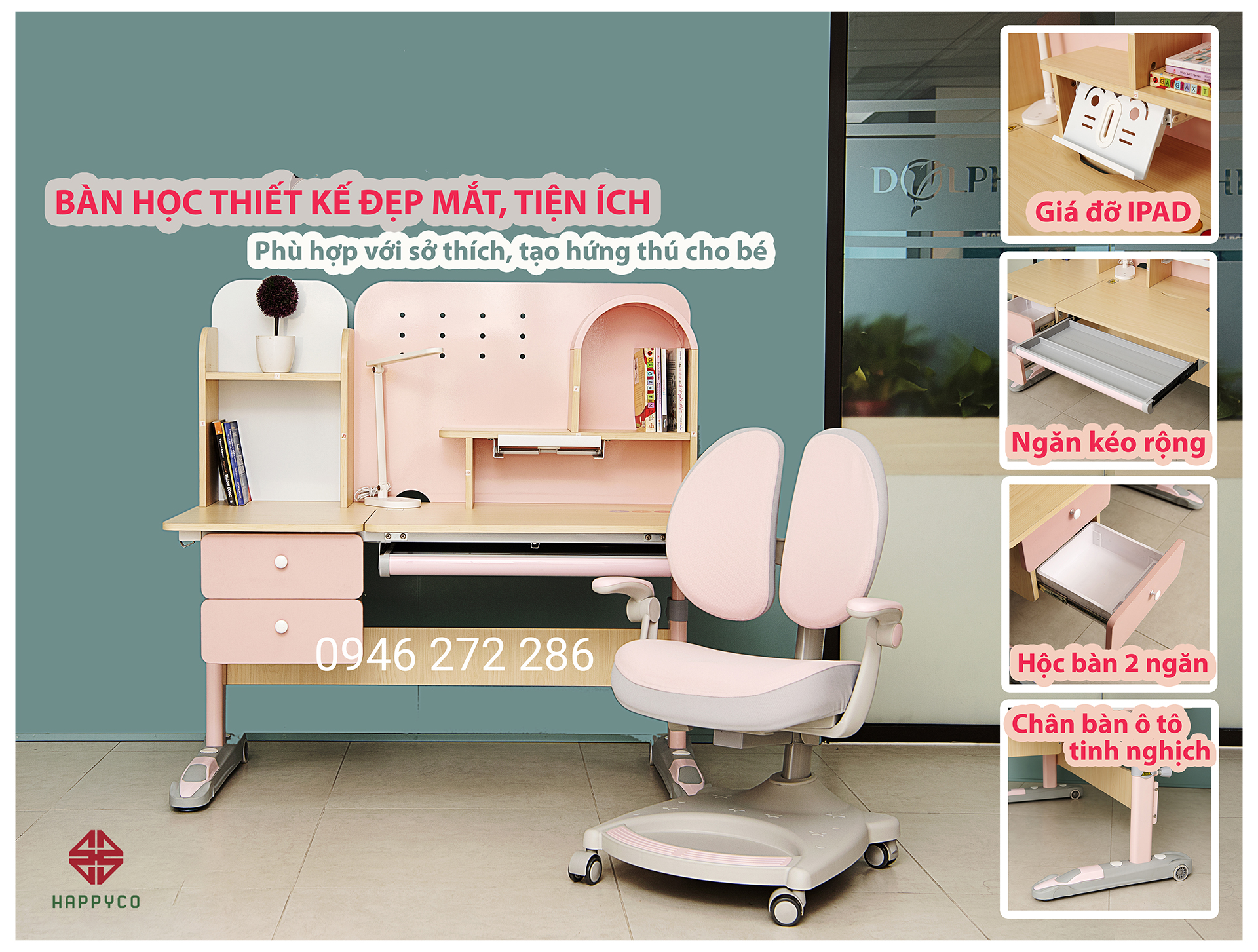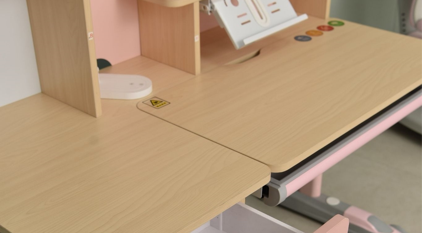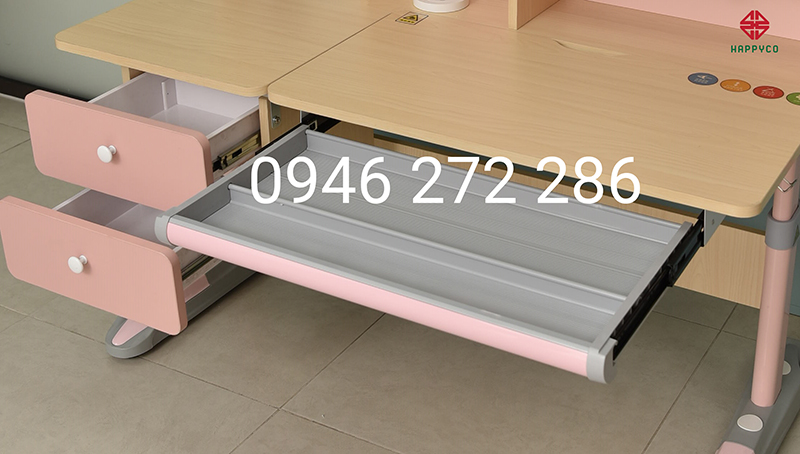 Ngoài ra ngăn kéo được thiết kế rộng rãi, thêm hai hộc bàn sẽ giúp con có nhiều không gian để sắp xếp đồ dùng học tập 1 cách hợp lý.