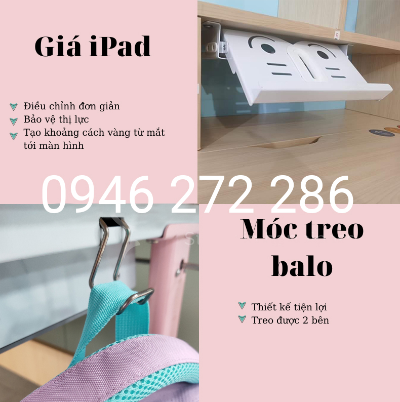 Giá dể ipad tích hợp điều chỉnh độ nghiêng lên tới 90 độ, đảm bảo tư thế ngồi, khoảng cách nhìn đạt chuẩn từ mắt tới màn hình. Giá treo balo tiện lợi được thiết kế 2 bên bàn vô cùng tiện lợi và hữu dụng.