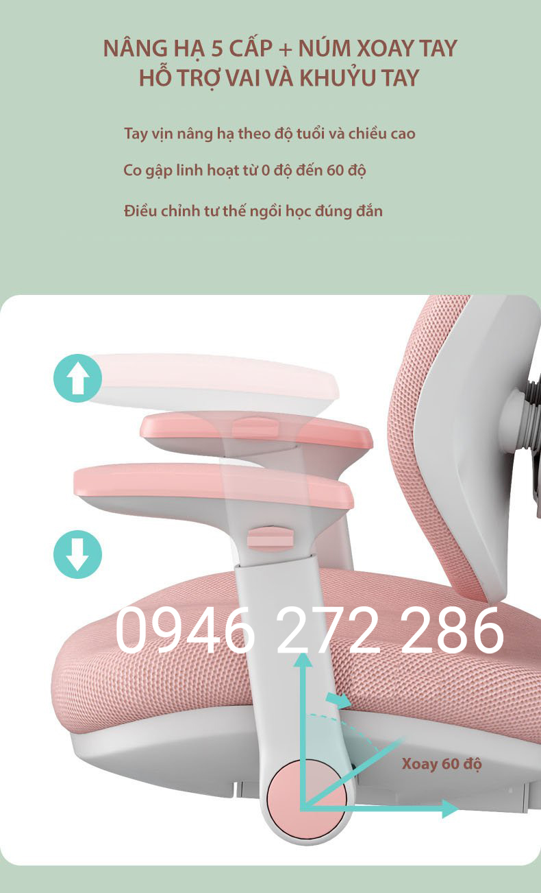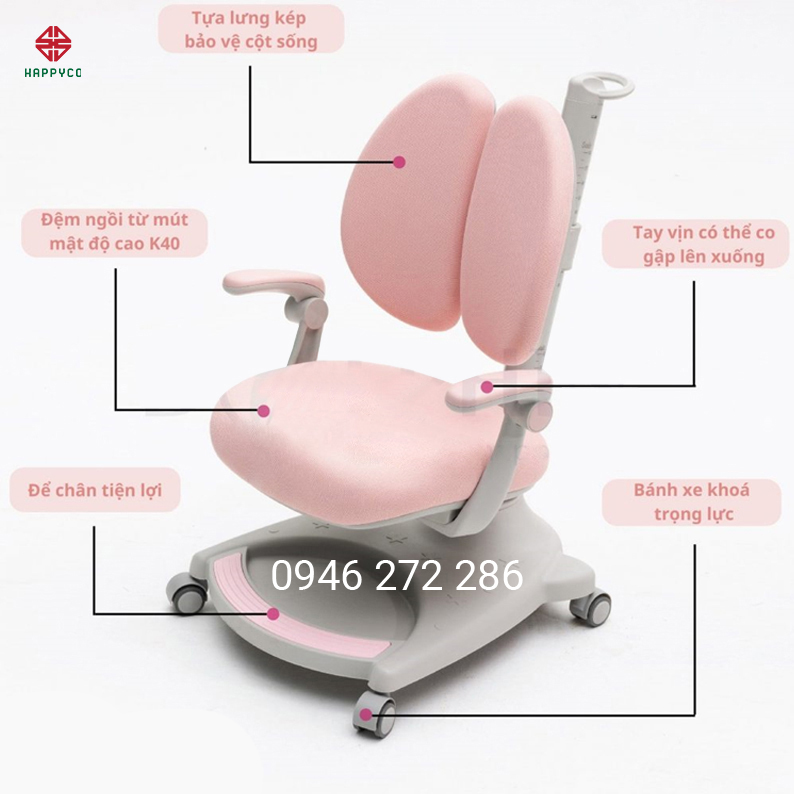 Với tính năng điều chỉnh được độ cao mặt ghế, độ cao lưng ghế theo kích thước cơ thể, độ hõm lưng ghế điều chỉnh phù hợp với kích thước cơ thể của từng trẻ. Độ cao và độ sâu khi ngồi dễ dàng điều chỉnh một cách độc lập; đảm bảo cho các con ngồi học ở tư thế thoải mái nhất dù con bạn ở bất kỳ độ tuổi; chiều cao; cân nặng nào.