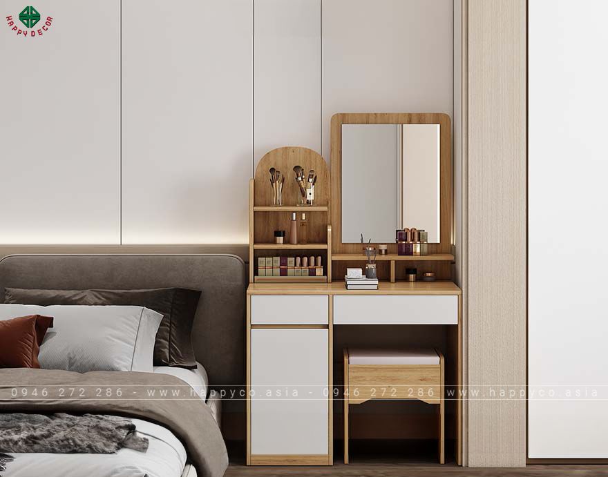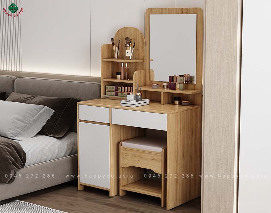 Nhu cầu làm đẹp của chị em phụ nữ là nhu cầu thiết yếu mỗi ngày, họ luôn muốn xinh đẹp trước mắt người thân và những người ngoài xã hội. Vì vậy, bàn trang điểm là một sản phẩm nội thất không thể thiếu trong phòng ngủ của mỗi gia đình. Nội thất HAPPY DECOR xin giới thiệu đến quý khách hàng mẫu bàn trang điểm nhỏ gọn BP6815 là món quà mà người phụ nữ thích nhất khi được nhận từ một nửa yêu thương của mình.