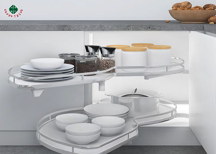Lắp đặt mâm xoay góc tủ bếp không chỉ giúp tối ưu không gian mà còn mang lại sự tiện lợi trong việc sắp xếp đồ dùng. Dưới đây là hướng dẫn chi tiết từ Happy Decor giúp bạn dễ dàng thực hiện tại nhà.
