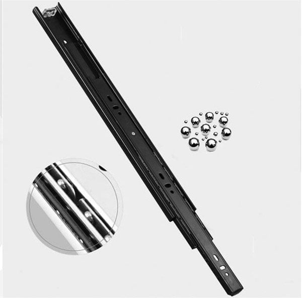 Khác với ray thường chỉ mở 2/3, ray bi 3 tầng cho phép kéo ra toàn phần, rất tiện cho tủ bếp, tủ hồ sơ, tủ lavabo...