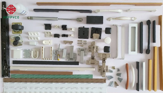 Phụ kiện nội thất là tập hợp những chi tiết hỗ trợ giúp tủ, kệ, bàn, ghế vận hành trơn tru và bền bỉ. Nó bao gồm: