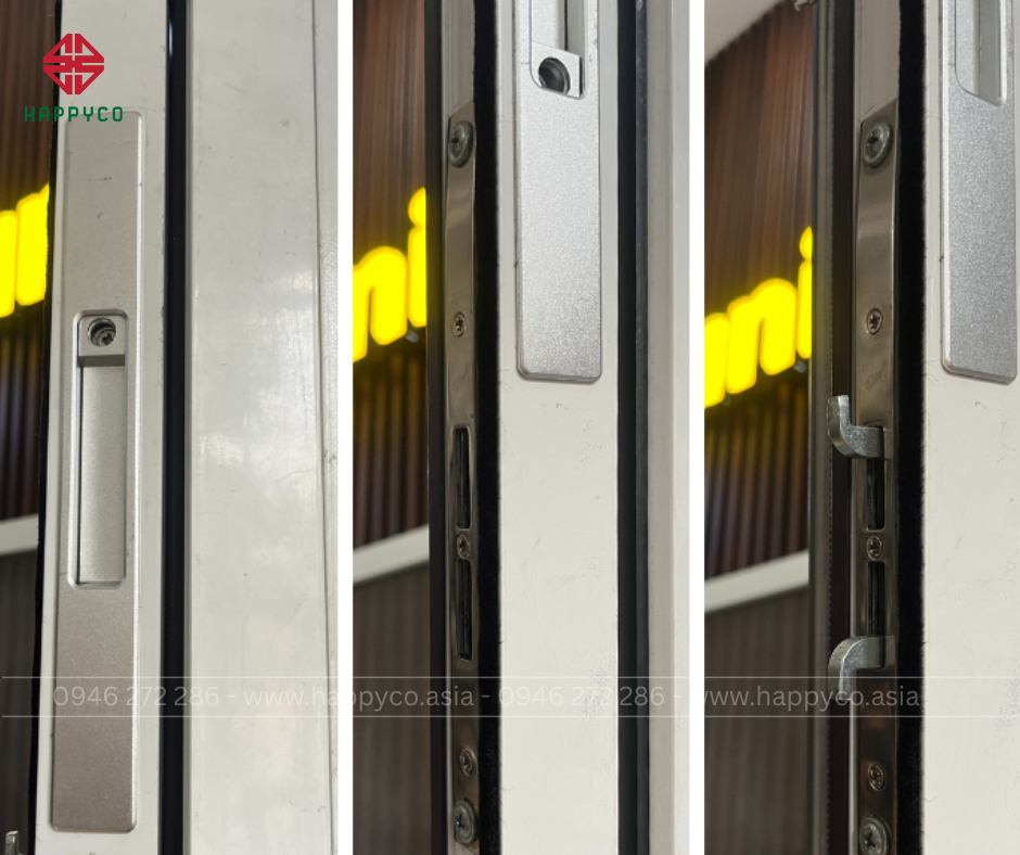 Tay nắm cửa âm lõm kể hợp chốt khoá an ninh của cửa xếp nhôm