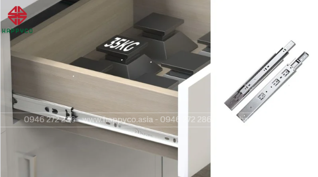 Thiết kế 3 tầng bi, trượt hết chiều dài ngăn kéo.