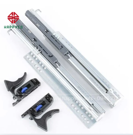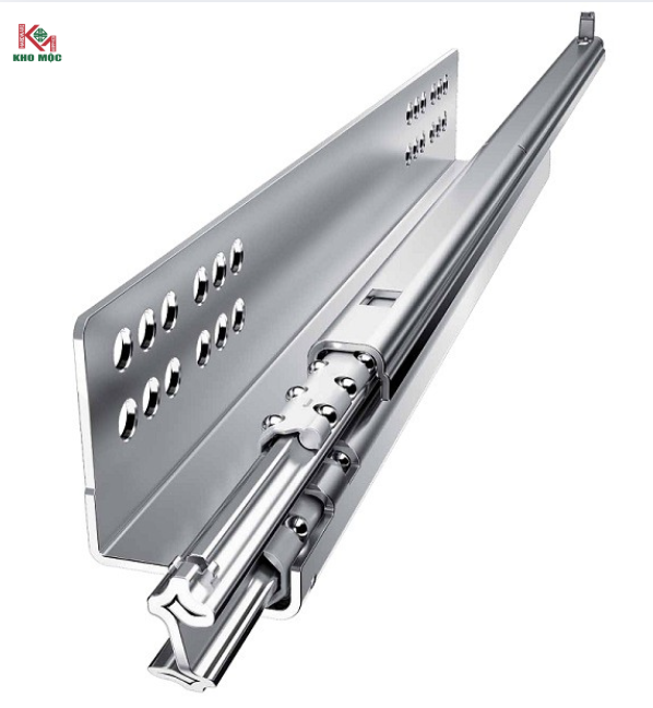 Ray âm giảm chấn là hệ thống trượt ngăn kéo được lắp ẩn hoàn toàn bên dưới hộc tủ (âm), tích hợp cơ chế giảm chấn giúp ngăn kéo đóng lại từ từ, nhẹ nhàng, không gây tiếng ồn và không va đập mạnh.