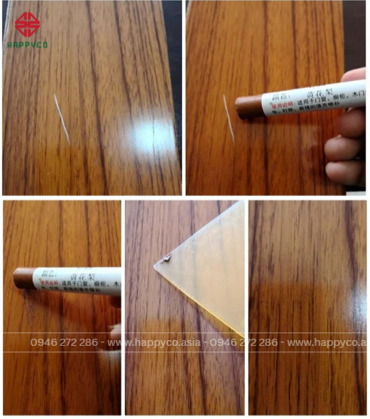 Sáp được làm từ chất sáp tổng hợp pha màu gỗ, có độ dẻo và bám tốt, dùng được trên nhiều loại gỗ như MDF, MFC, Plywood, Veneer hay gỗ tự nhiên.