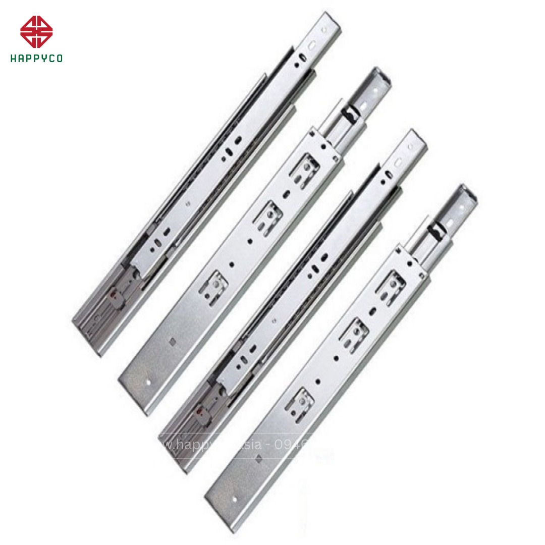 Ray bi giảm chấn, ray âm giảm chấn. Đa dạng kích thước, chịu tải từ 30–45kg.