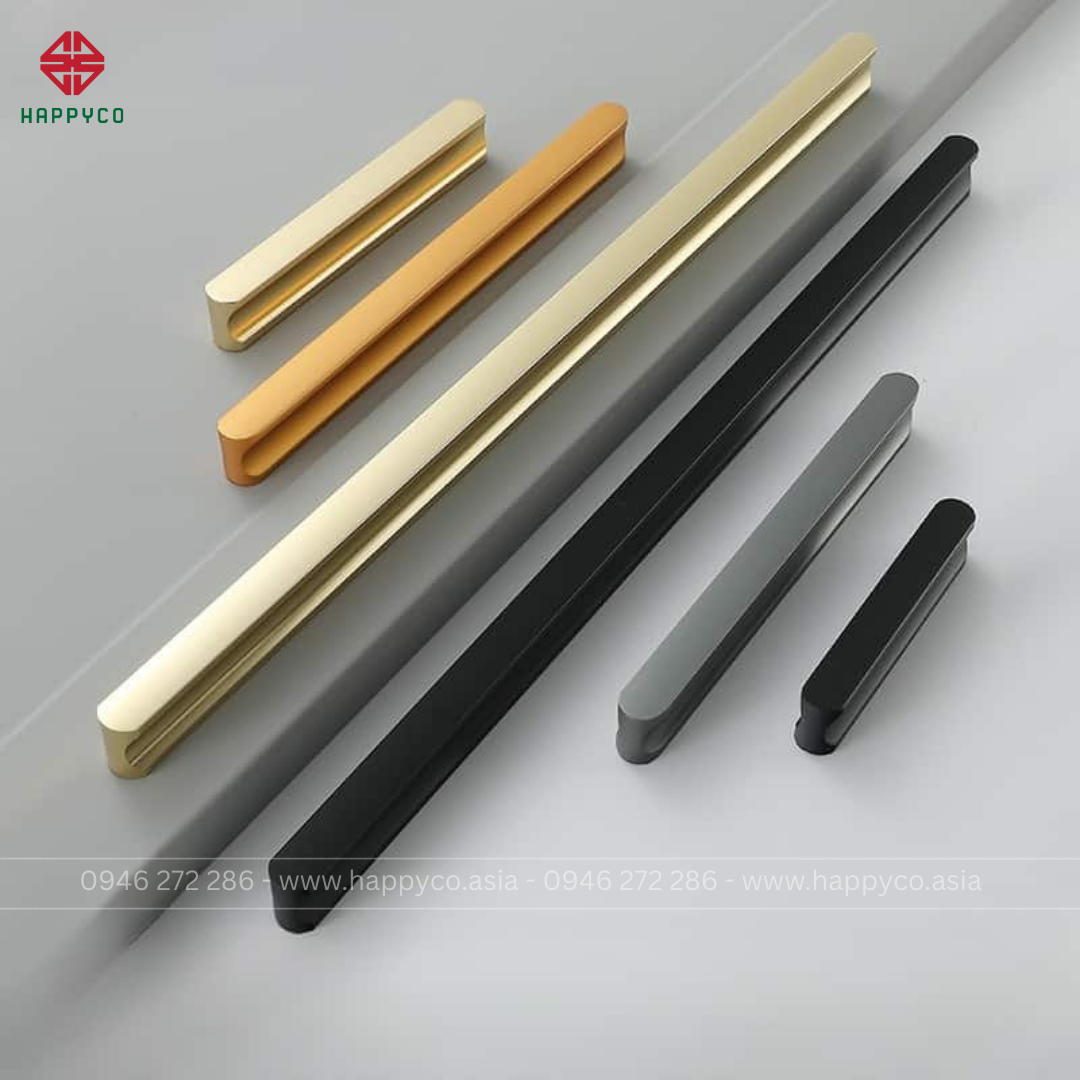 Hiện đại → tay nắm dài, màu đen hoặc inox mờ.
