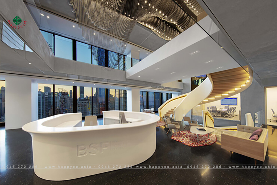 Bàn lễ tân văn phòng là điểm nhấn vô cùng quan trọng giúp tạo ấn tượng tốt đầu tiên cho khách hàng hoặc đối tác khi đến với công ty. Vì vậy, yêu cầu đối với thương gia là thiết kế nội thất khu vực lễ tân phải chuyên nghiệp, sang trọng, xứng đáng với định vị của thương gia.