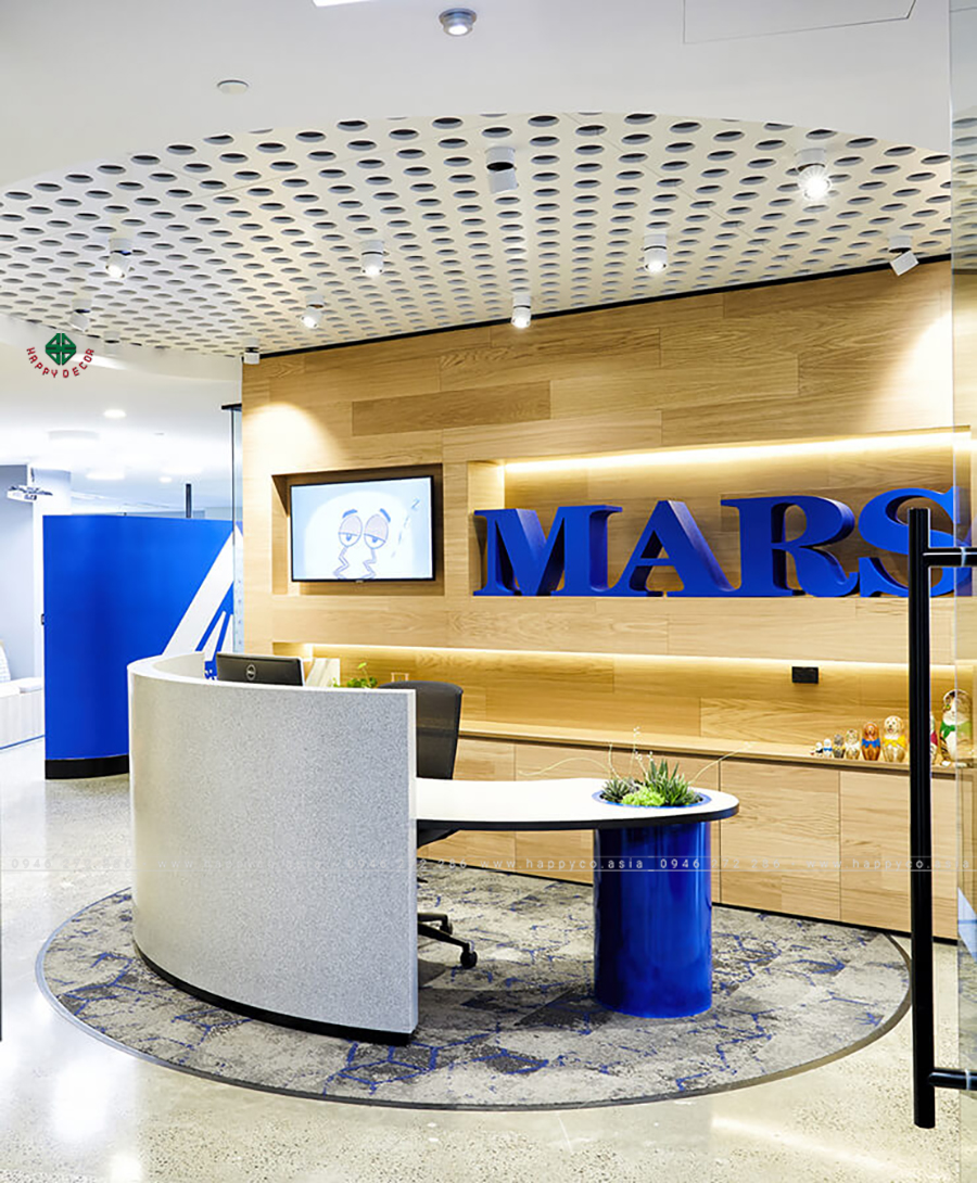 Bàn lễ tân văn phòng Mars có thiết kế cong “nửa kín, nửa mở” ấn tượng (Văn phòng Mars Food Australia - Sydney, Australia)