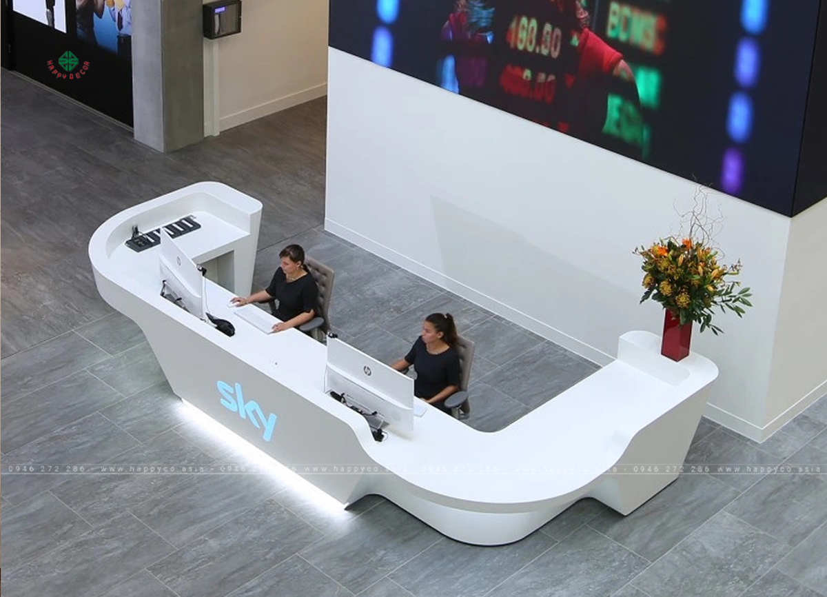 - Mẫu 13 – Thiết kế bàn lễ tân mang phong cách tương lai