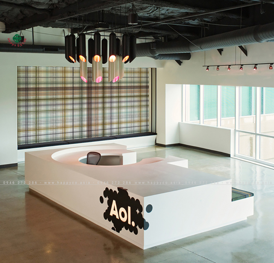 - Mẫu 29 - Thiết kế bàn lễ tân đẹp với kết cấu trần độc đáo