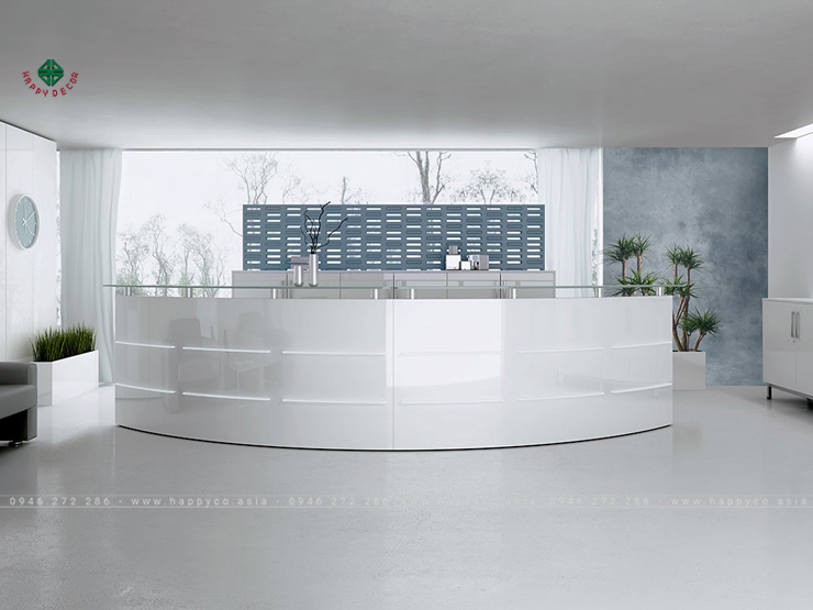 Khi lựa chọn nội thất tốt cho bàn lễ tân, hãy thiết kế kiểu dáng để tận dụng tối đa những đường cong