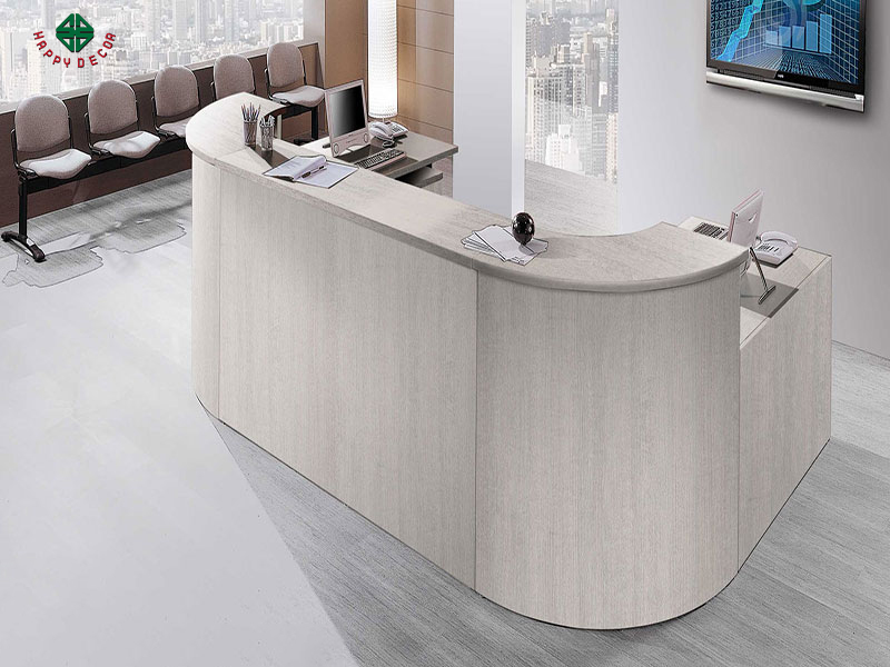 - Mẫu 22 - Thiết kế bàn lễ tân hình cong sử dụng vật liệu hiện đại
