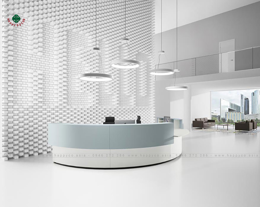 - Mẫu 28 - Thiết kế bàn lễ tân tạo hình cong 3D ấn tượng