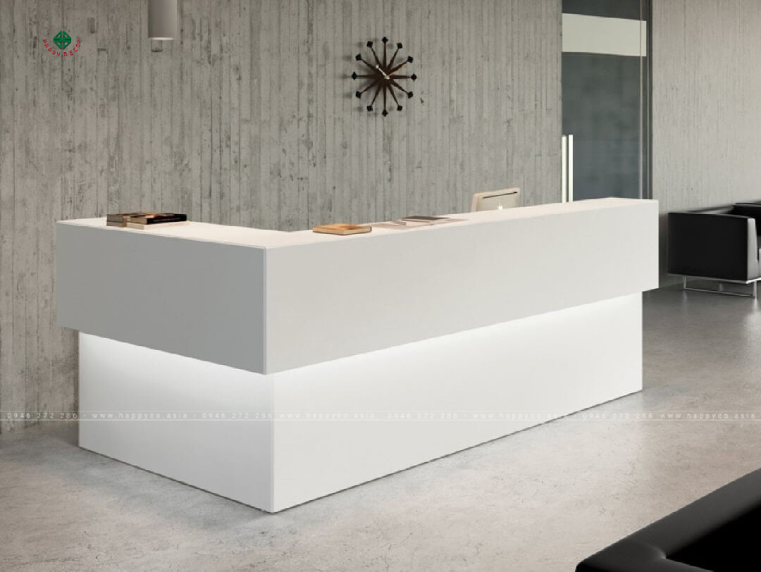 - Mẫu 9 - Thiết kế quầy lễ tân hình chữ L màu trắng sang trọng