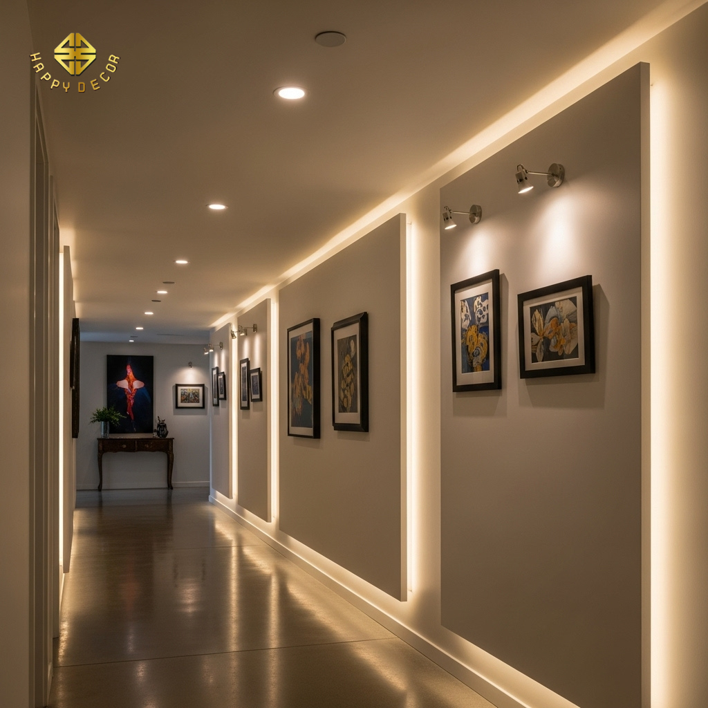 Ánh Sáng Điểm Nhấn (Accent): Đèn hắt tranh, đèn hắt khe hẹp (cove light), đèn hắt chân tường.