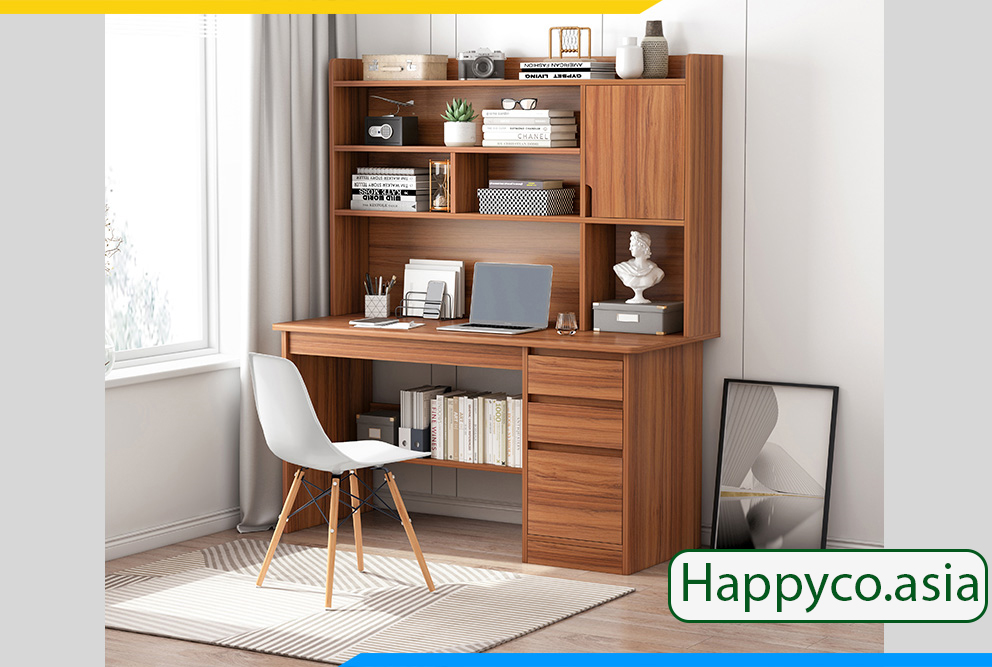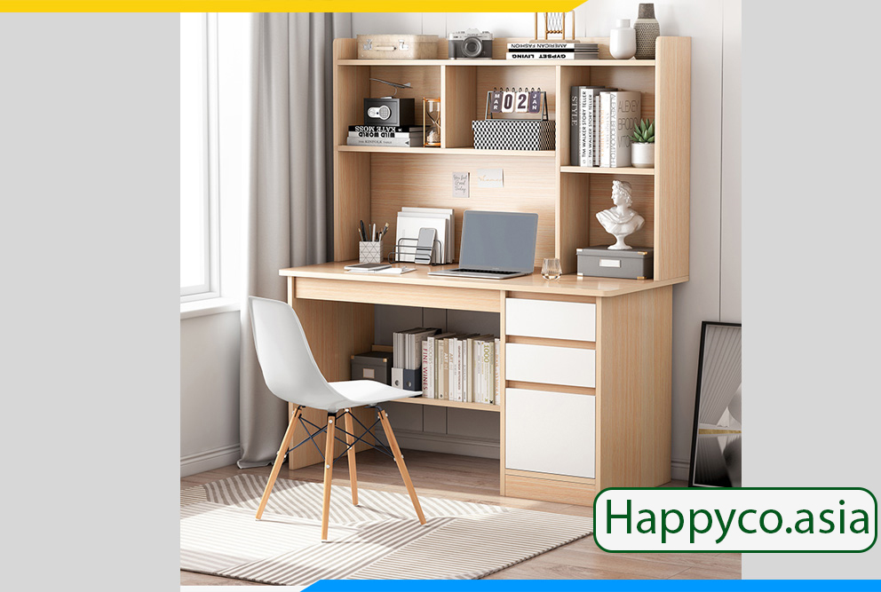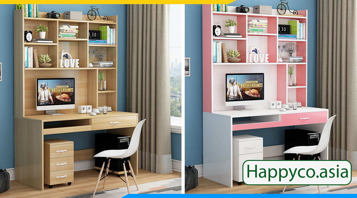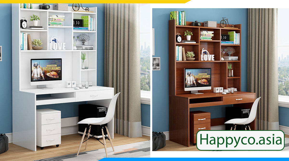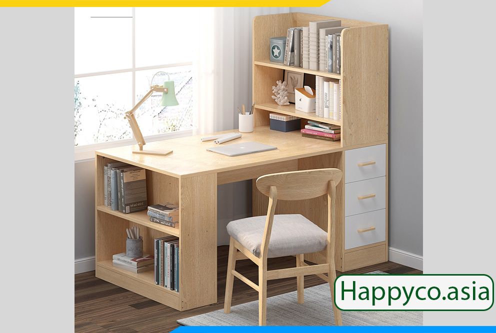 8. Mẫu bàn học liền giá sách 2 tầng, 3 ngăn kéo hiện đại tại Happyco Biên Hòa – Đồng Nai
