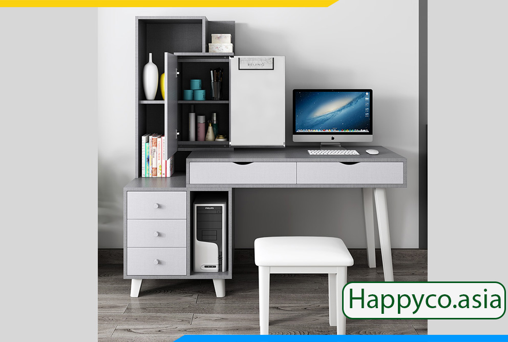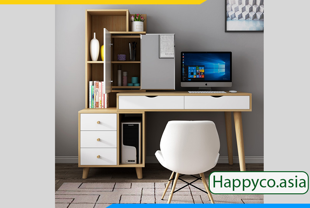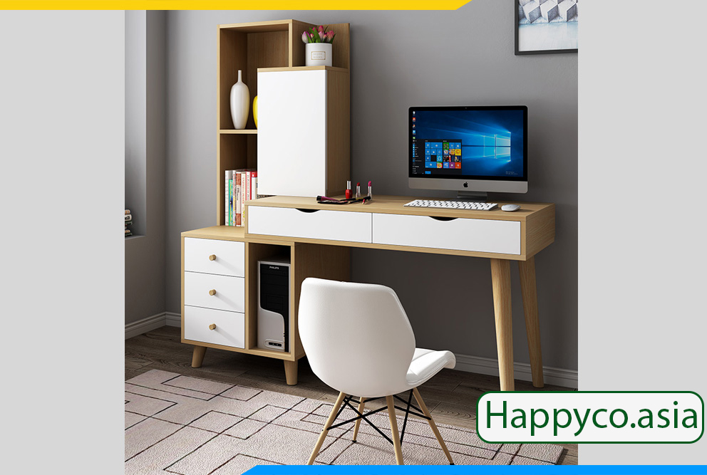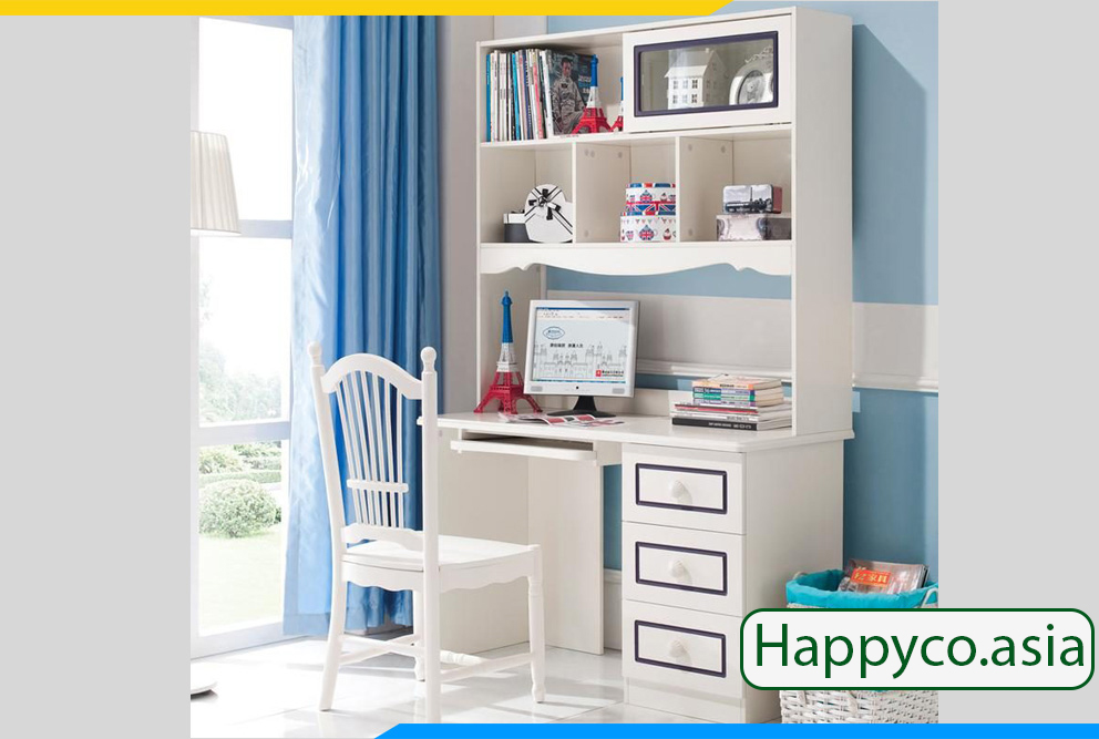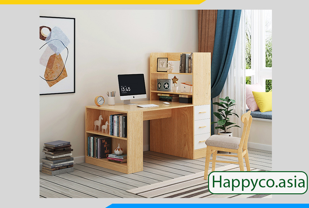 8. Mẫu bàn học liền giá sách 2 tầng, 3 ngăn kéo hiện đại tại Happyco Biên Hòa – Đồng Nai
