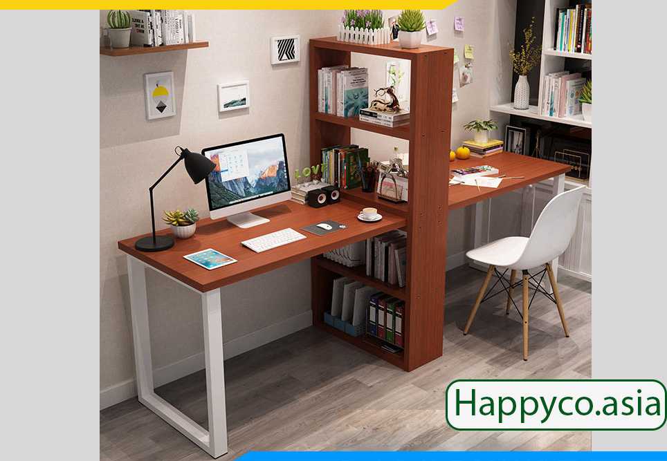 4. Mẫu bàn học đôi chân sách kèm giá sách làm vách ngăn tại Happyco Biên Hòa – Đồng Nai
