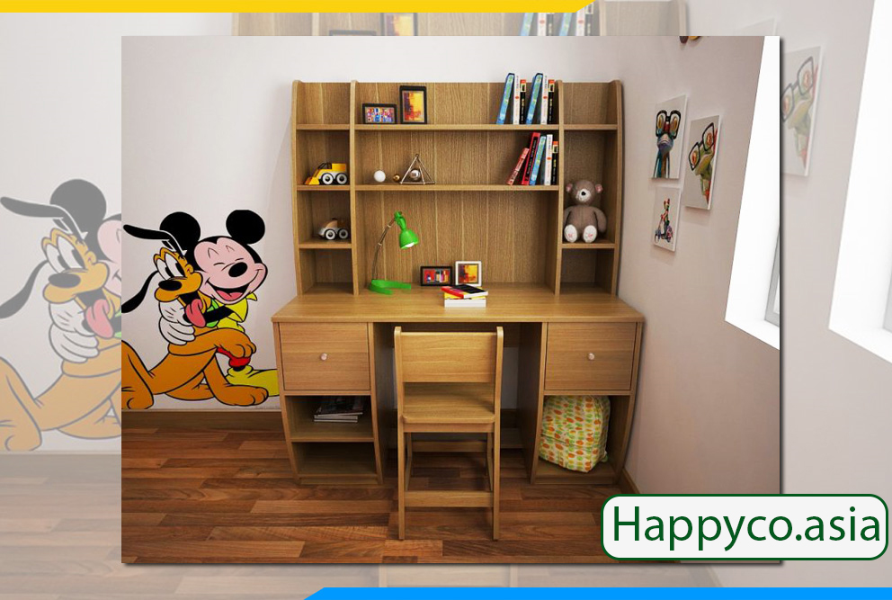 1. Mẫu cơ bản của bàn học liền giá sách MDF được sử dụng phổ biến hiện nay tại Happyco Biên Hòa – Đồng Nai