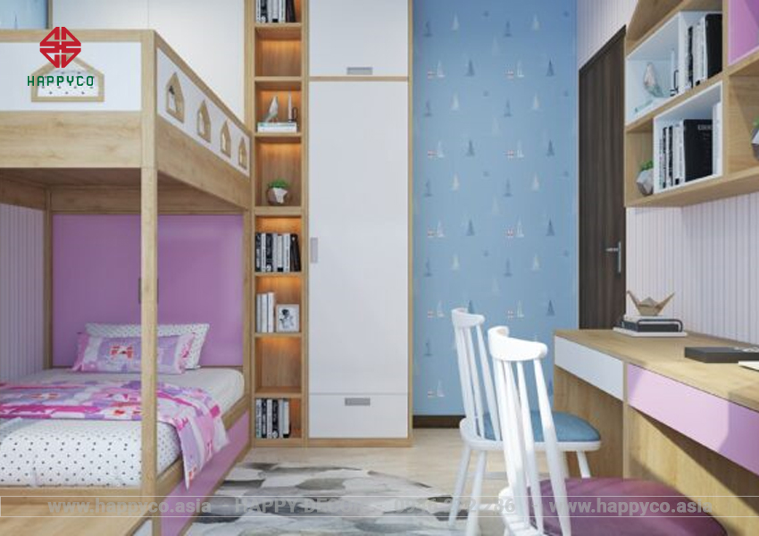 Thiết kế nội thất chung cư phong cách hiện đại diện tich 75m2 phòng ngủ bé gái
