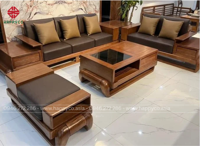 Bàn trà: Thường sẽ được sản xuất kèm theo Sofa. Có 2 loại bàn trà tròn và hình chữ nhật, có một số gia chủ lại thích sử dụng bàn có phong cách tự do không theo một phong cách nhất định.