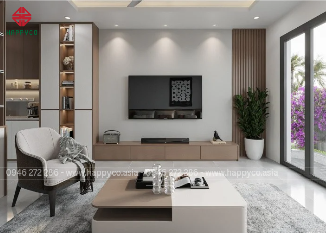 Dùng gỗ công nghiệp để trang trí phòng khách hiện đại thêm nổi bật và sang trọng