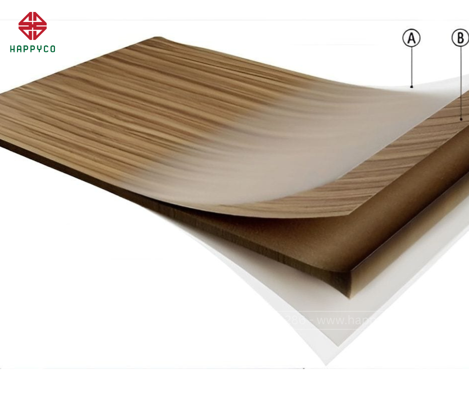 Lớp giữa (B): Đây là lớp đống vai trò tạo màu, tạo vân gỗ,... nhằm tăng thẩm mỹ cho bề mặt gỗ.