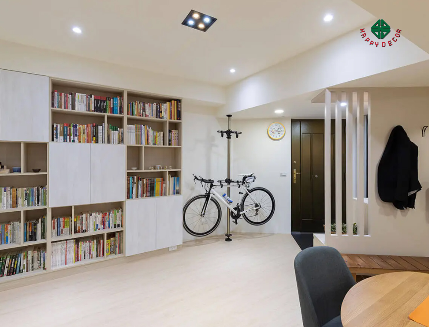 - Lập kế hoạch lưu trữ:"Happy Decor" luôn lắng nghe và quan tâm đến ý kiến của các gia chủ Chu Gia Vệ nhấn mạnh, việc quy hoạch và thiết kế từng nhóm tủ hệ thống không chỉ cần đạt được chức năng lưu trữ, mà còn phải tạo ra không gian bên ngoài các tủ hệ thống cũng ép tạo ra các ô vuông lớn hoặc nhỏ và tái chế thành không gian chung của cả gia đình, chẳng hạn như hệ thống tủ lưu trữ phía sau bàn ăn, nửa không gian bên trái và mặt tiền được lấp đầy, nửa bên phải được nới rộng và thu vào, để gia đình ăn uống Không gian trở nên rộng hơn, bạn có thể thoải mái đi lại, tâm trạng cũng thoải mái.