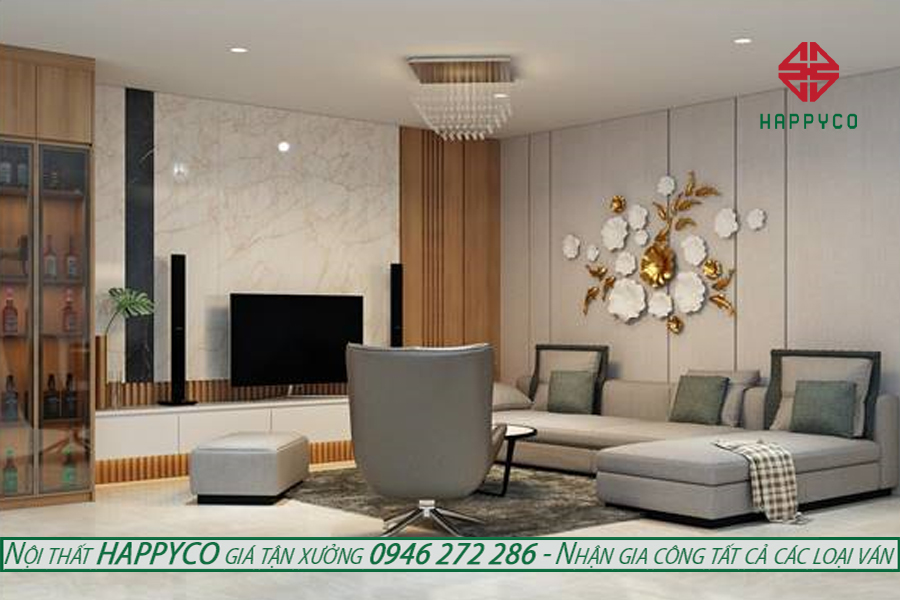 Trên thực tế, Nội thất Happyco đã thực hiện rất nhiều công trình khác nhau như: nhà phố, nhà chung cư, biệt thự, bệnh viện, trường học, showroom, nhà hàng, spa….Mọi công trình đều mang đến sự hài lòng cho khách hàng, trong đó có yếu tố phong thủy. Điều này là nhờ sự chuyên nghiệp và lòng nhiệt huyết của đội ngũ các kiến trúc sư, nhà thiết kế của chúng tôi. Mời bạn tham khảo một số mẫu phòng khách thực tế mà Happyco đã thực hiện cho khách hàng mệnh Kim để hiểu rõ hơn về chúng tôi:
