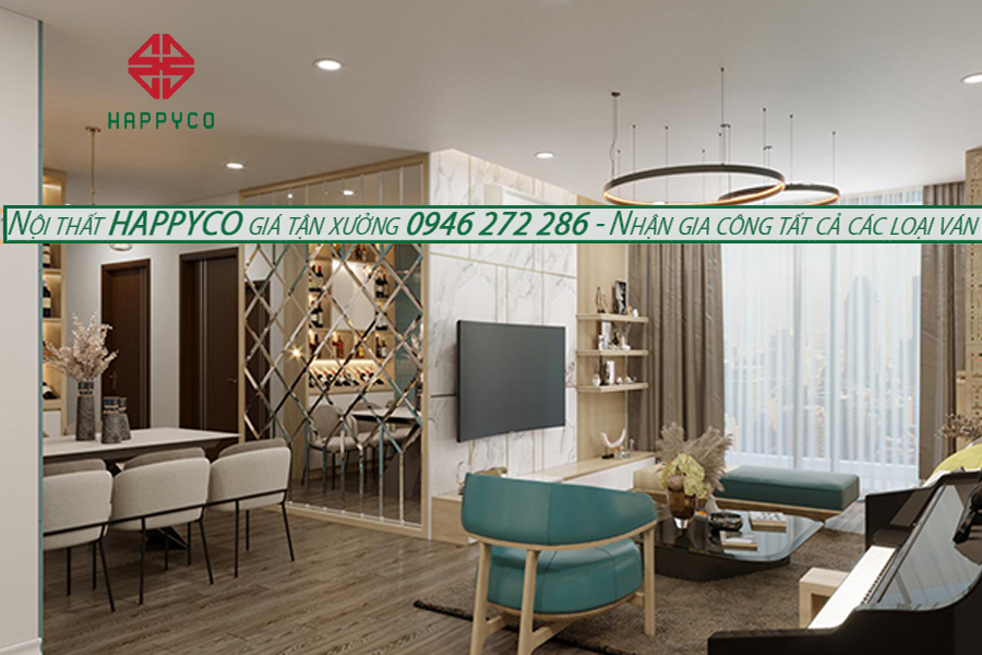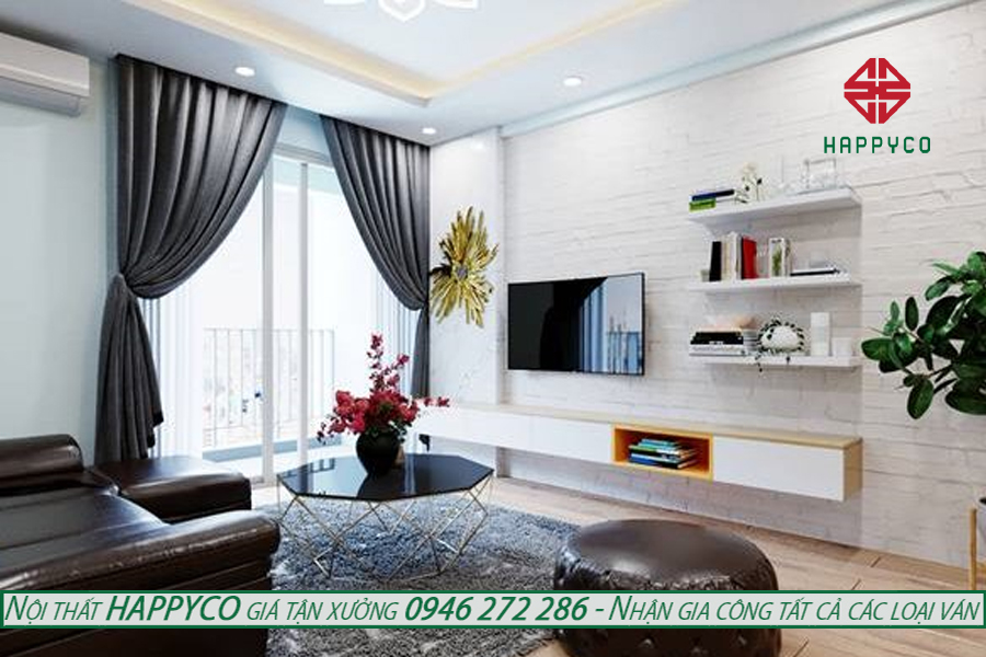 Hiện nay, Nội thất Happyco là đơn vị chuyên thiết kế thi công nội thất gỗ công nghiệp uy tín, được nhiều người tin tưởng và lựa chọn. Những thiết kế của Happyco mang đến tính thẩm mỹ cao, công năng sử dụng được đảm bảo và luôn hợp phong thủy, giúp mang lại tài lộc, sức khỏe, may mắn cho gia chủ. Quý khách sẽ được tư vấn kỹ, được lựa chọn phương án thiết kế đúng với mong muốn của mình. Việc hoàn thiện nội thất phòng khách trước khi đưa vào sử dụng đã mang lại kết quả tốt, khiến khách hàng hài lòng với những gì mà họ nhận được.