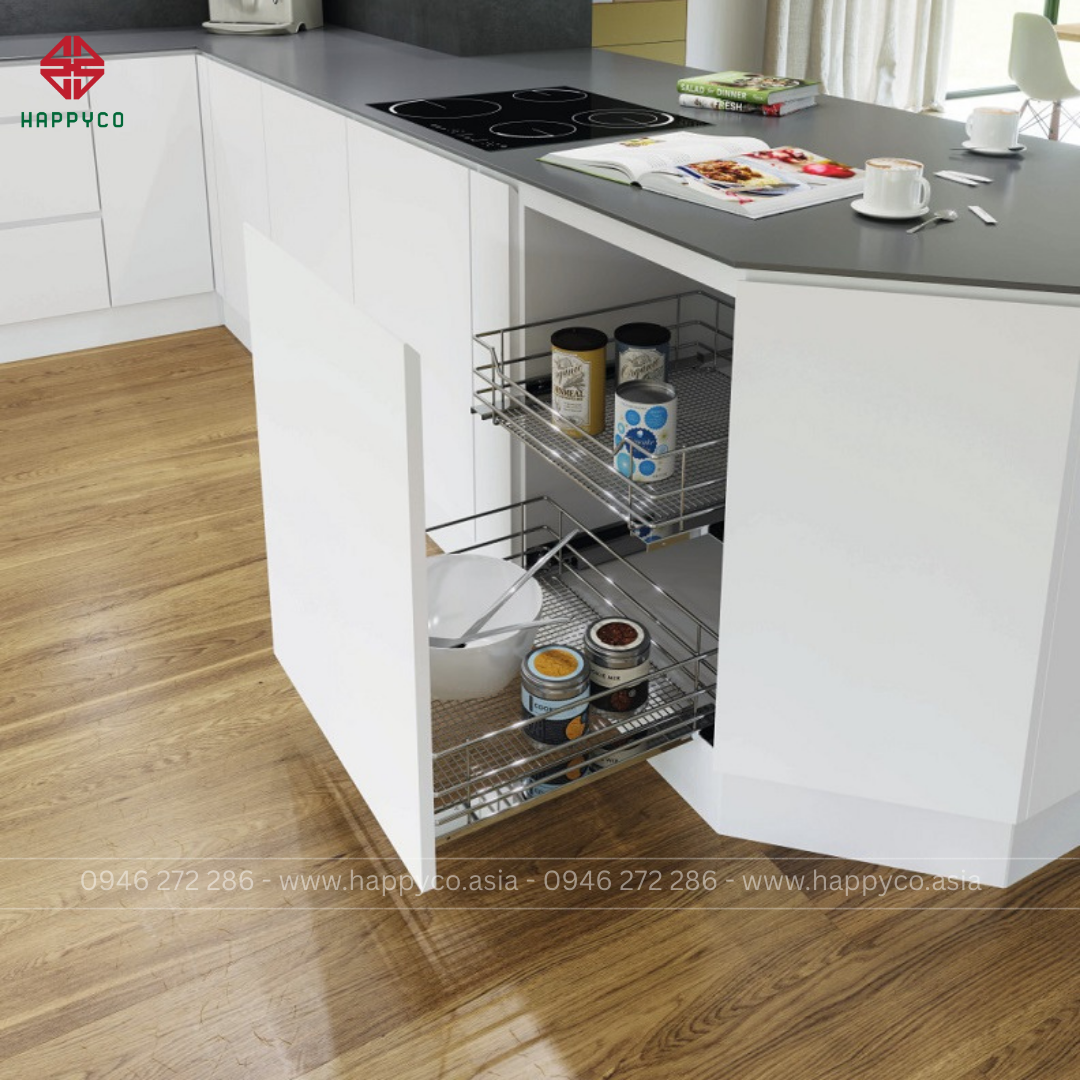 Là những đồ gắn vào tủ/kệ/bàn… có cơ chế trượt êm, đóng êm, mở chạm, cảm biến đèn, kệ kéo tối ưu góc chết. Mục tiêu: ít cúi – ít tìm – ít ồn, bền và đẹp.
