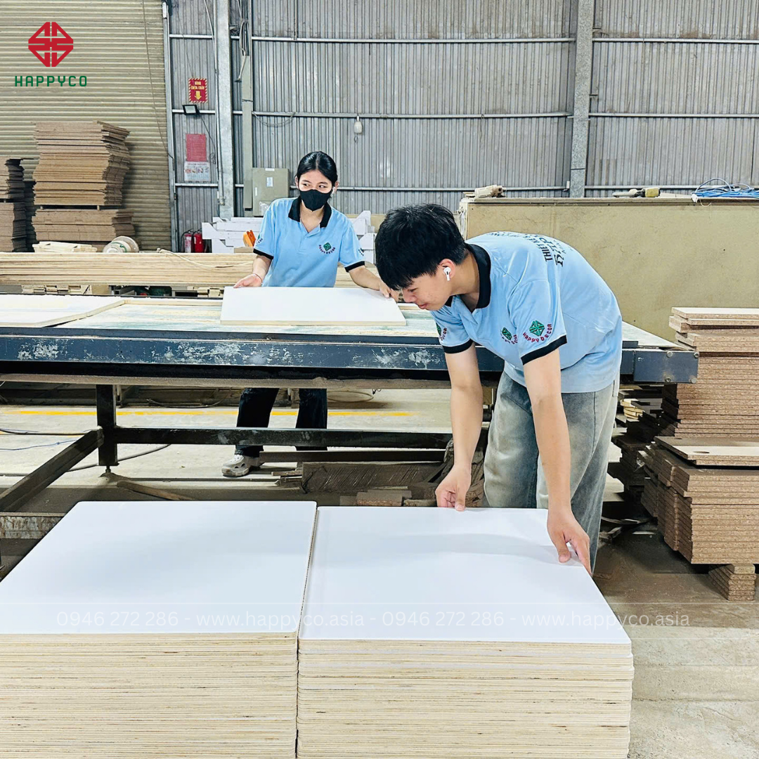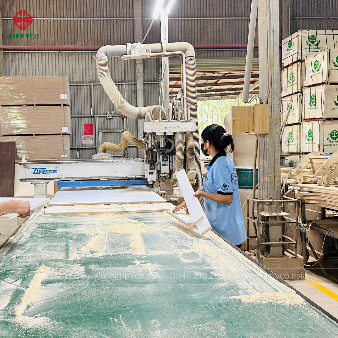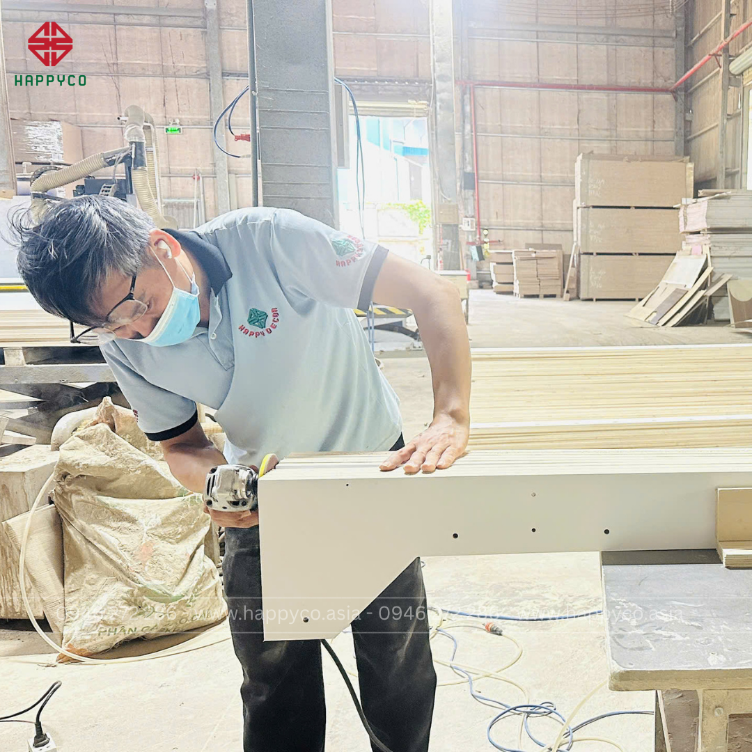 Đội ngũ thợ lành nghề của Happy Decor không chỉ hiểu ván, hiểu máy – mà còn hiểu cái “tính” của từng loại vật liệu.