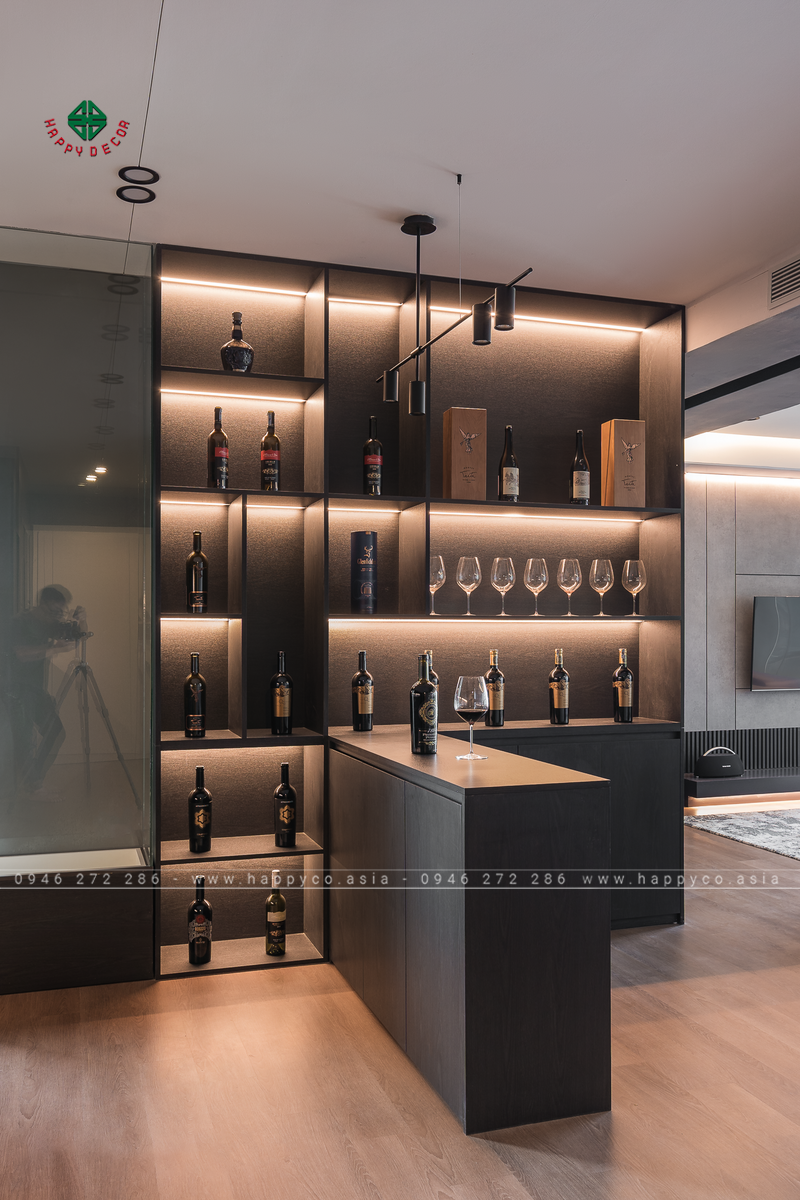 Tủ rượu được đặt trong căn hộ theo phong cách sang trọng