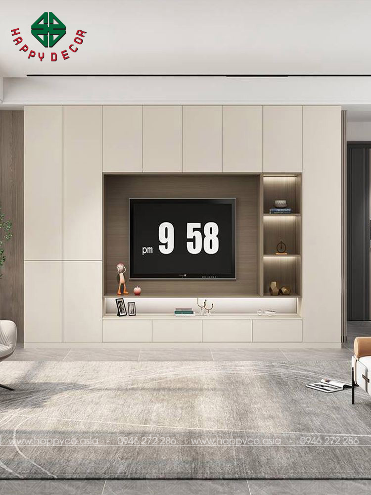 Happy Decor là một đơn vị tự hào chuyên về thiết kế và thi công nội thất tủ quần áo kết hợp kệ tivi, được đánh giá cao về sự uy tín và chất lượng. Với đội ngũ chuyên viên thiết kế và thợ mộc giàu kinh nghiệm, chúng tôi cam kết mang đến cho khách hàng những không gian sống tiện nghi và thoải mái với mức chi phí vô cùng hợp lý.