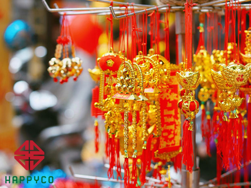 Có nhiều kiểu dáng, kích thước, mẫu mã đa dạng với hai màu chủ đạo là đỏ và vàng, những mặt dây treo may mắn này sẽ giúp trang trí cho cây hoa mai, hoa đào thêm phần lung linh, ấn tượng.