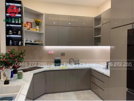 - Số lượng thành viên: Gia đình đông người cần tủ bếp có nhiều ngăn chứa và mặt bếp rộng rãi.