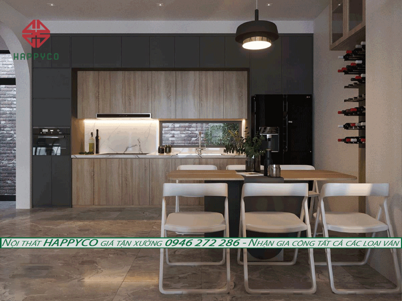 Ấn tượng thiết kế nội thất gỗ công nghiệp phòng bếp