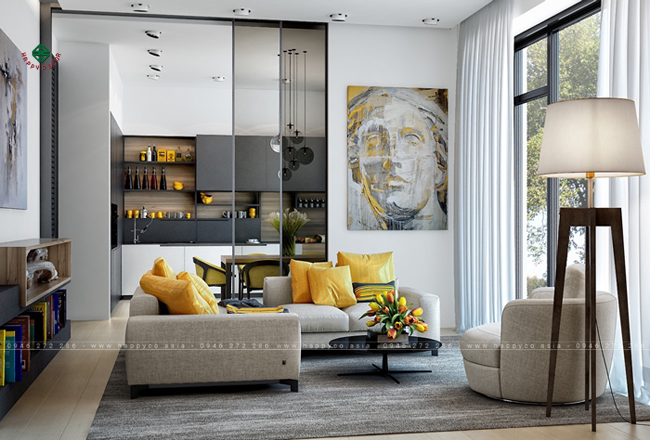 Căn phòng sử dụng màu vàng làm điểm nhấn rất sang trọng