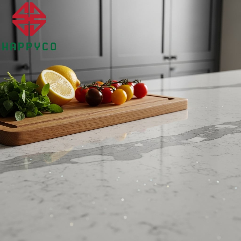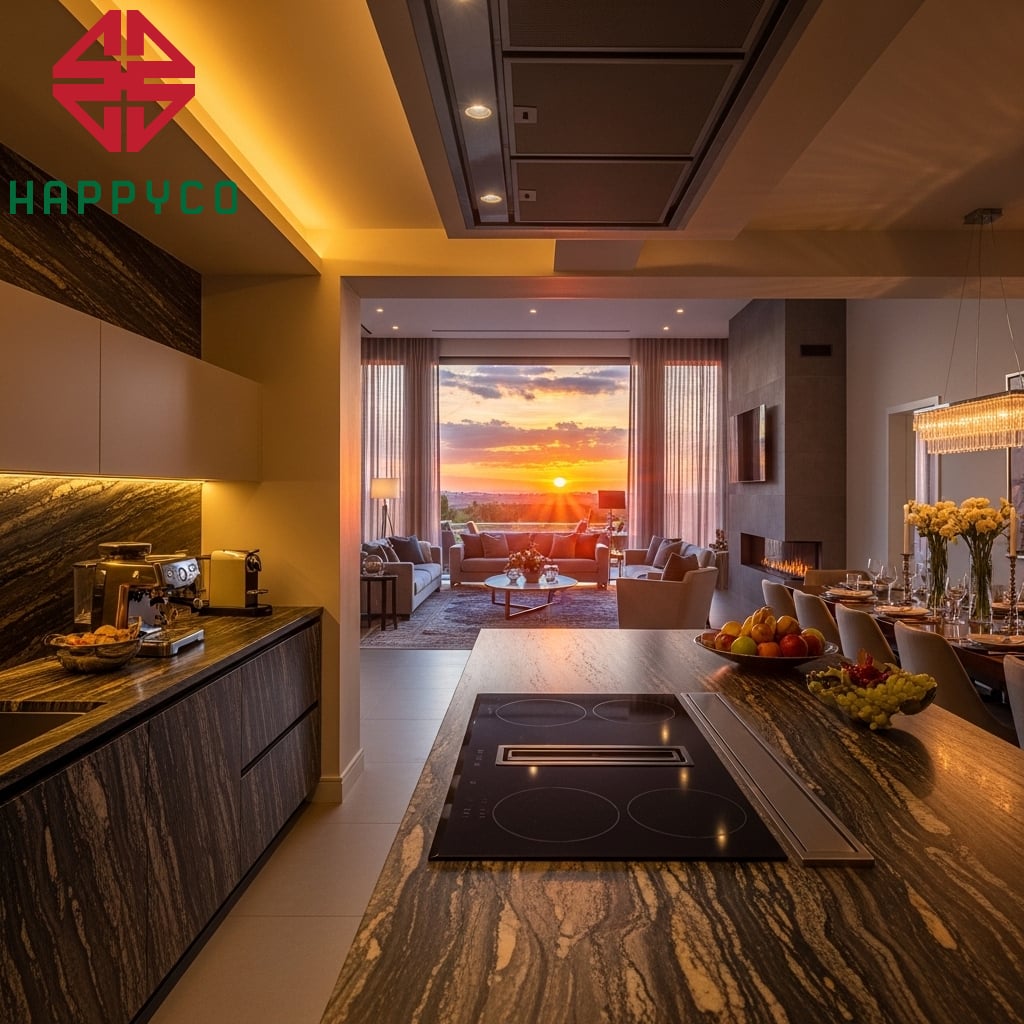 Sự bền bỉ của thời gian: Chúng tôi lựa chọn những dòng đá nung kết và đá thạch anh cao cấp, không chỉ chống thấm, chịu nhiệt mà còn mang vẻ đẹp vân đá tự nhiên đầy mê hoặc. Những bề mặt này không chỉ để ngắm, mà để bạn tự tin đặt lên đó mọi tâm huyết nấu nướng.