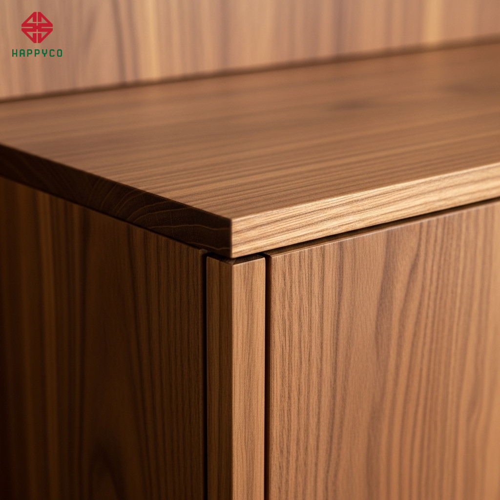 Kết quả: Các đường vân gỗ sẽ chạy liên tục, không bị đứt quãng tại các vị trí nối. Đây là chi tiết nhỏ nhưng lại là thước đo đẳng cấp của một đơn vị thi công chuyên nghiệp, khiến khách hàng phải trầm trồ vì độ tinh xảo vượt xa mong đợi.