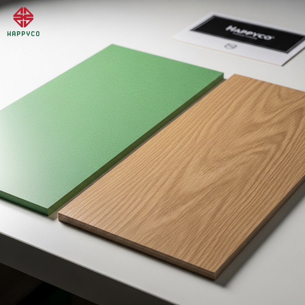 Tối ưu hóa vật liệu: Tại Happyco, chúng tôi tư vấn bạn chỉ dùng ván kháng ẩm cho những khu vực như bếp, lavabo. Với các khu vực khô ráo như kệ tivi hay tủ trang trí, việc sử dụng ván tiêu chuẩn sẽ giúp giảm giá thành đáng kể mà vẫn đảm bảo thẩm mỹ tuyệt đối.