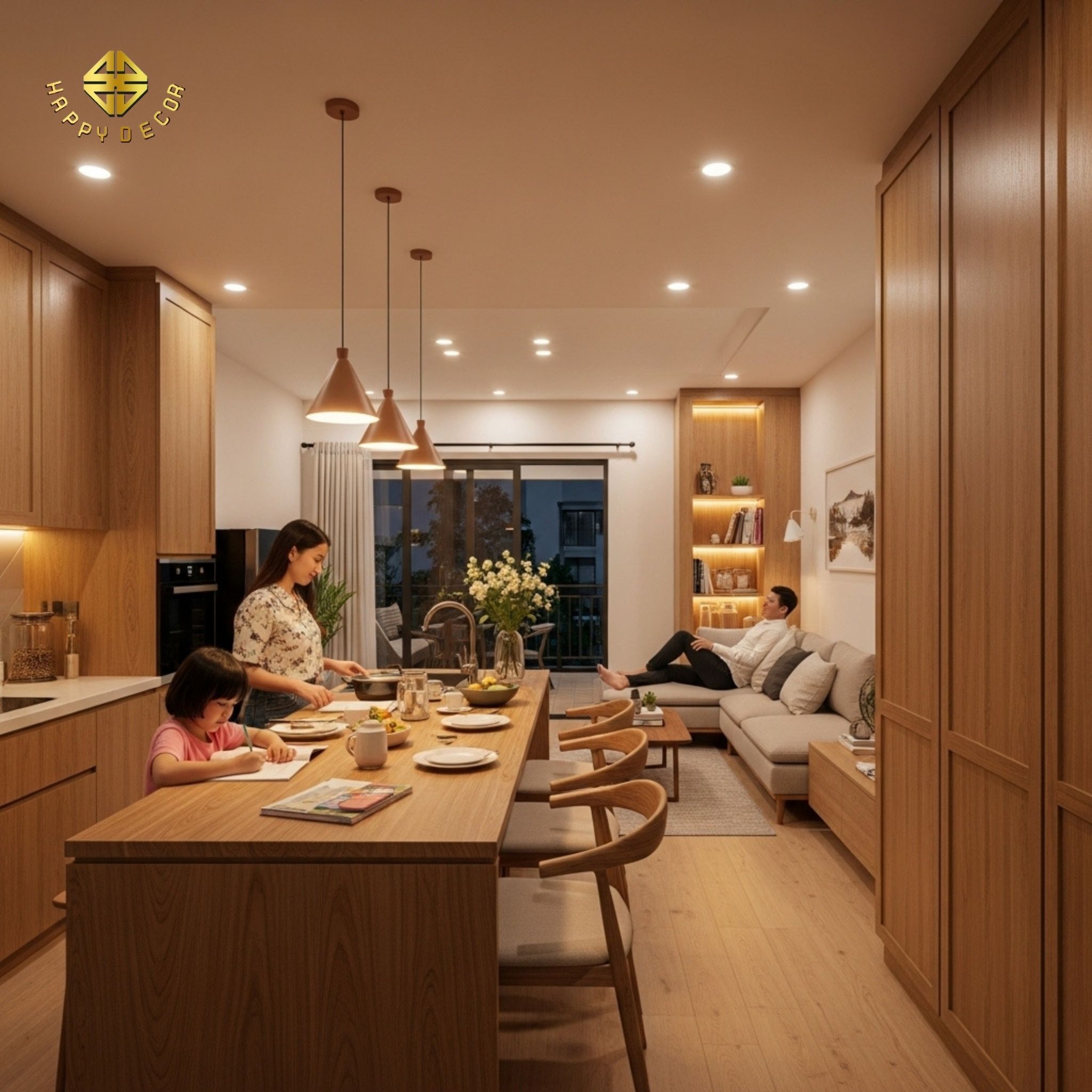 Bí Quyết Thiết Kế Không Gian Đa Năng: Biến Phòng Khách/Bếp Thành "Trung Tâm Năng Lượng" Kết Nối Gia Đình Việt Hiện Đại
