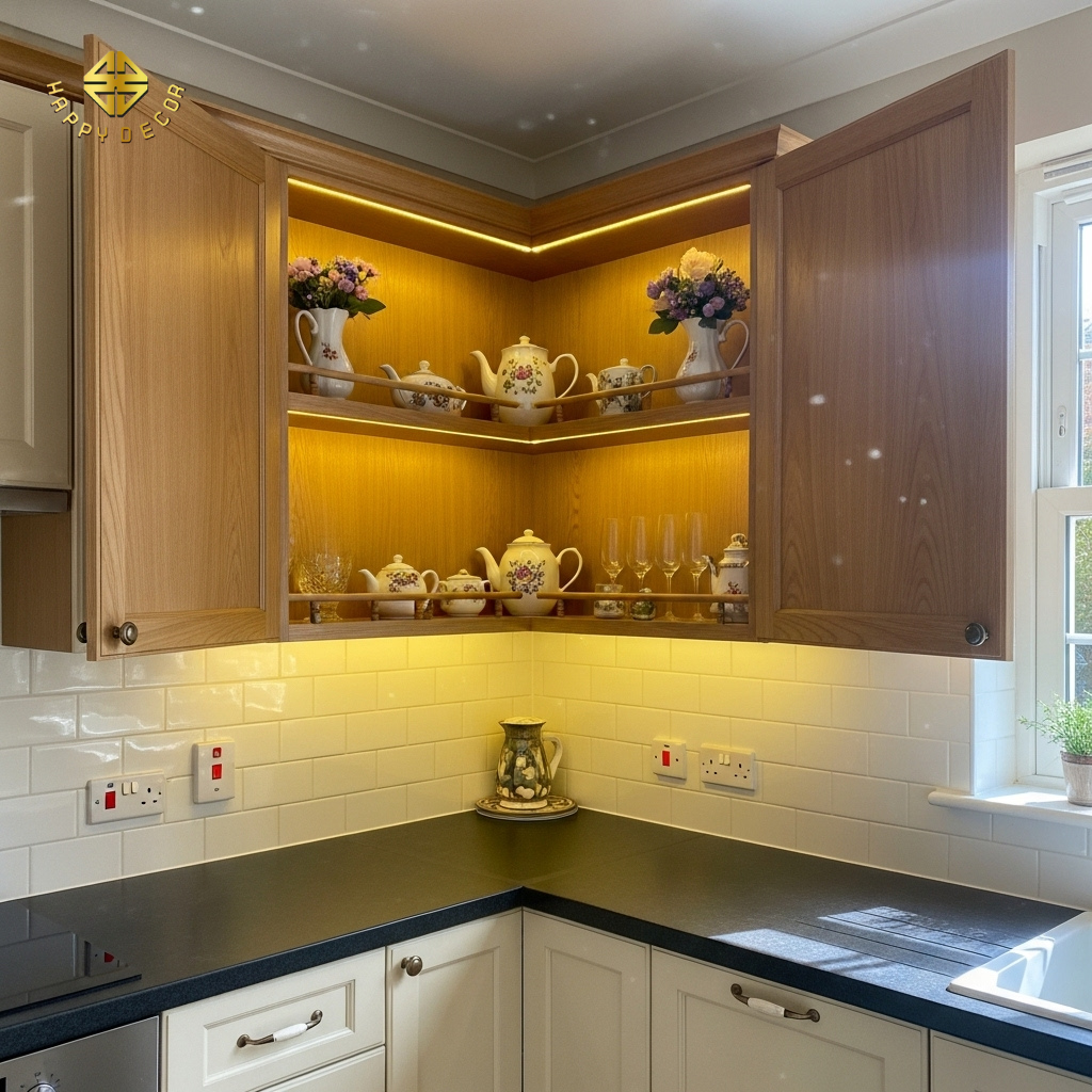 1. Kệ góc liên hoàn (Magic Corner) – Tận dụng chiều sâu tuyệt đối